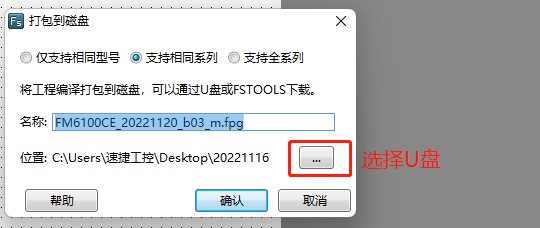 1.觸摸屏接通電源,軟件內點擊“打包到磁盤”,