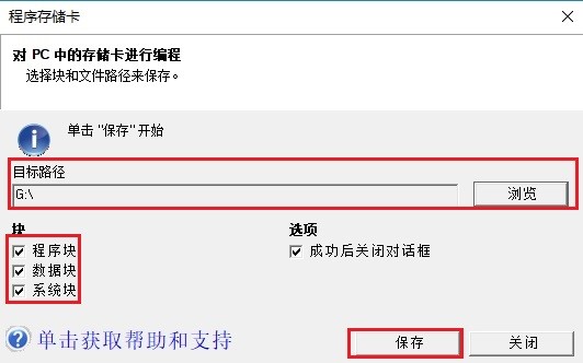 打開"程序存儲卡"對話框,選擇需要被拷貝到存儲卡上的塊(程序塊、系統(tǒng)塊、數(shù)據(jù)塊),單擊"瀏覽"按鈕,導(dǎo)航至SD卡的根文件夾,如圖5所示: